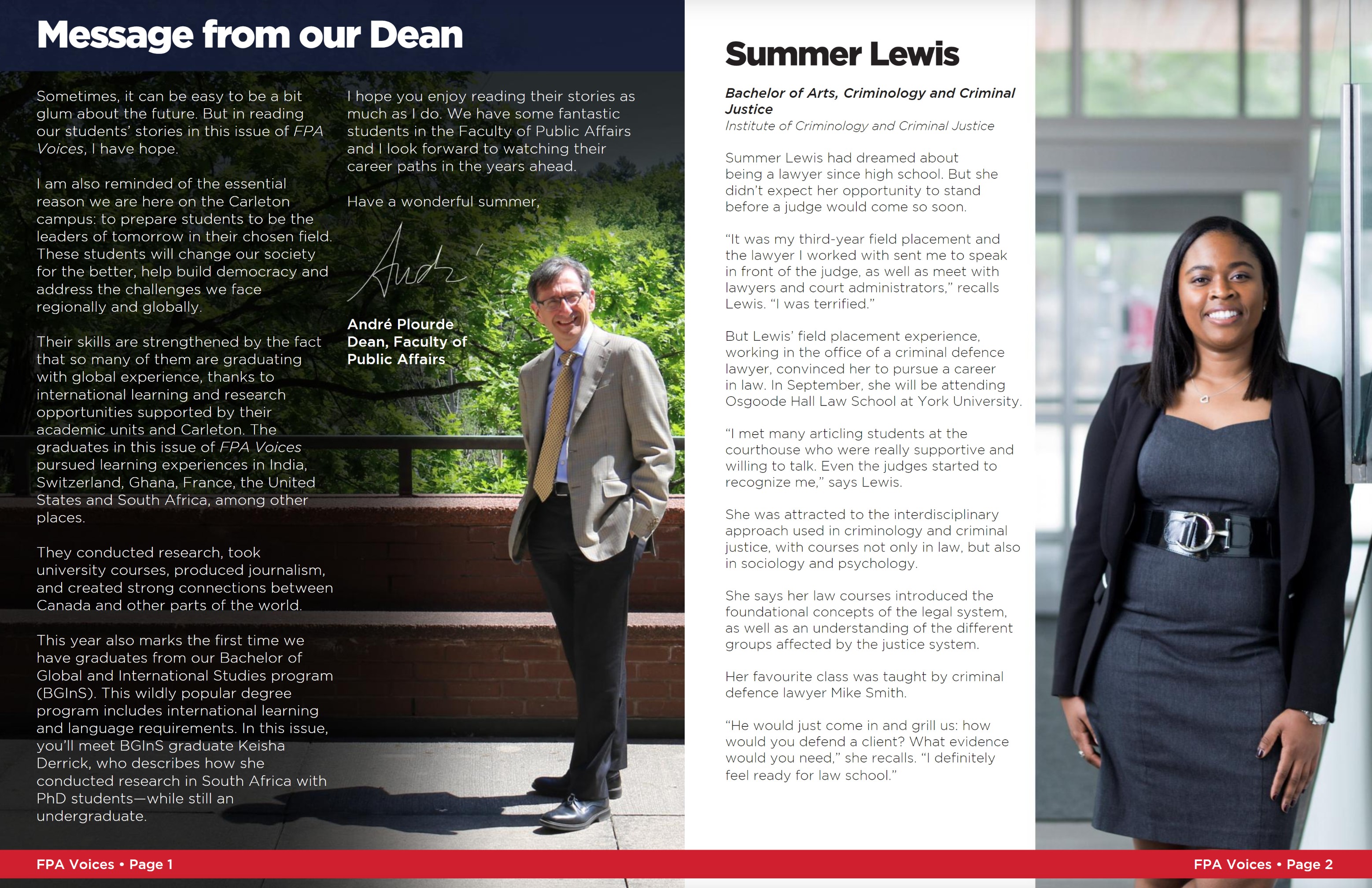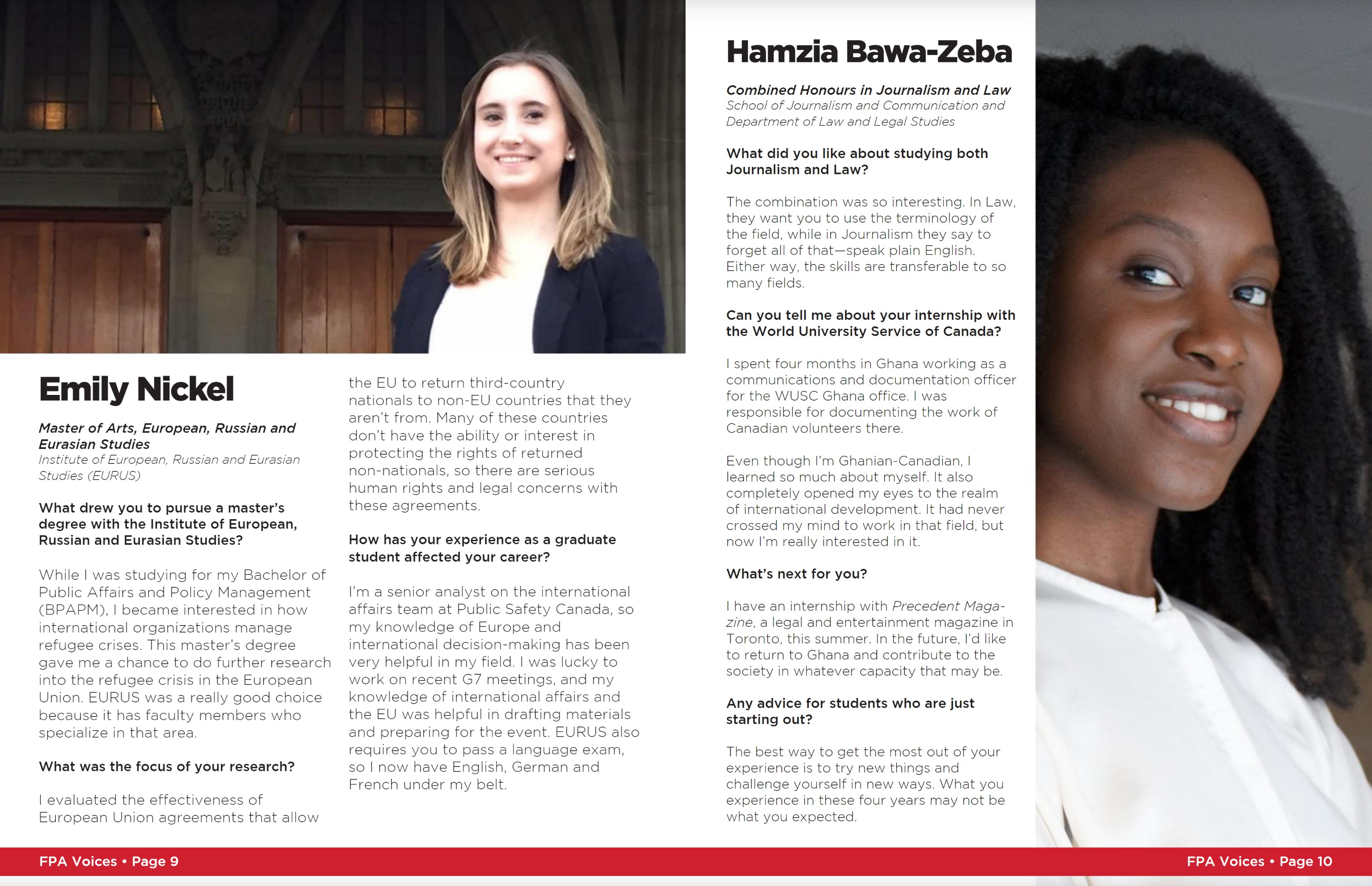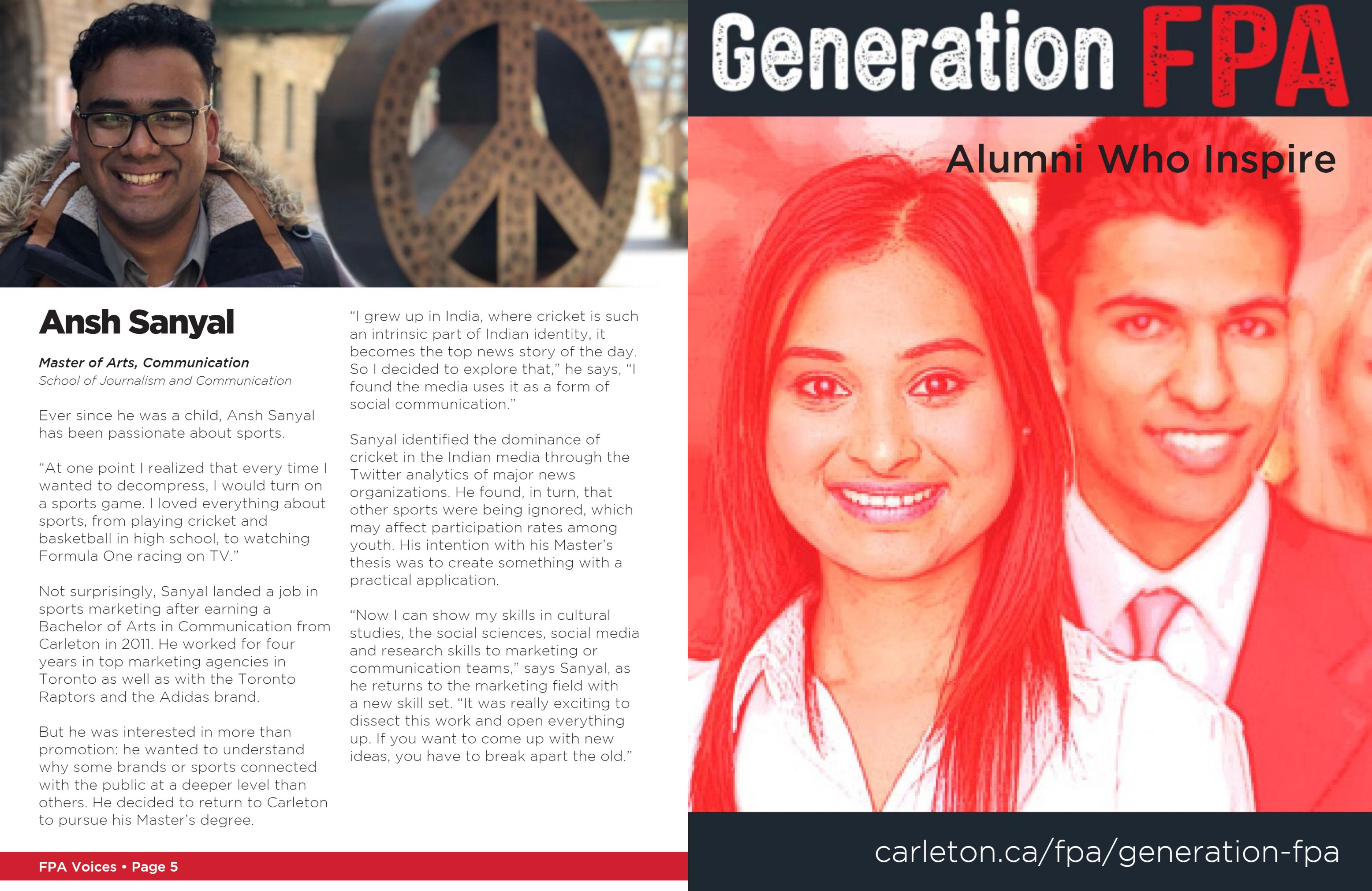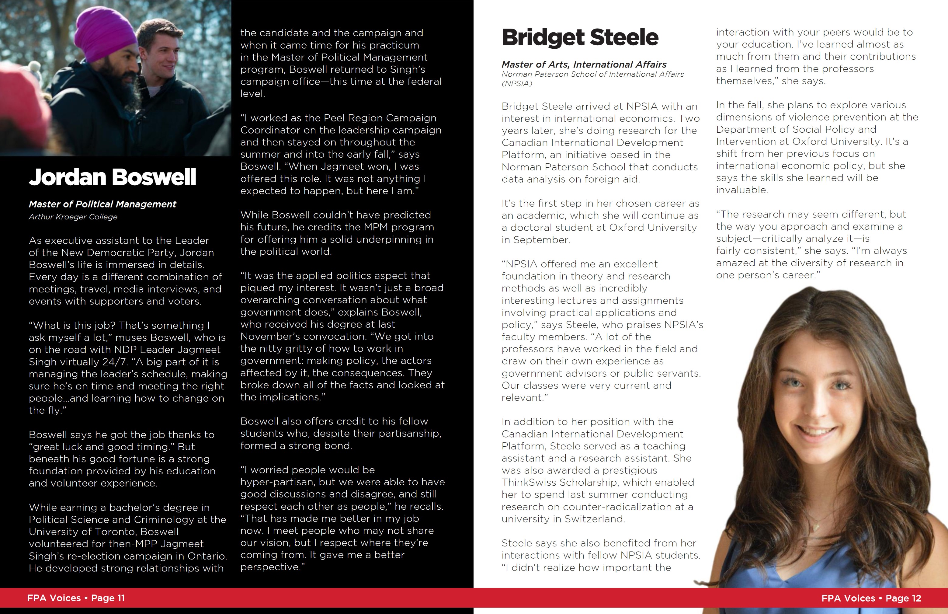 During my time at Carleton University I was responsible for producing, designing and photographing a number of department collateral pieces. One such project was the “FPA Voices” magazine for alumni of the Faculty of Public Affairs. You can see a sample of what I produced here.